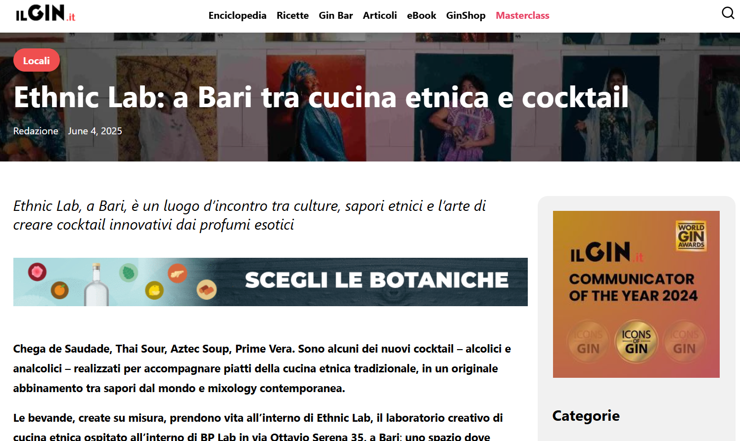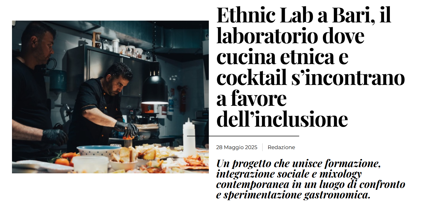 Press Iltaccodibacco15/01/2026 “Il format ormai consolidato propone un vero e proprio viaggio culturale attraverso le cucine del mondo, questa volta focalizzato sui profumi intensi e sui piatti iconici dei pub britannici” Food & Wine Italia28/05/2025 “Un progetto che unisce formazione, integrazione sociale e mixology contemporanea in un luogo di confronto e sperimentazione gastronomica” Ilgin.it04/06/2025 “Ethnic Lab, a Bari, è un luogo d’incontro tra culture, sapori etnici e l’arte di creare cocktail innovativi dai profumi esotici” Telebari11/07/2024 “A Pane e Pomodoro il food truck dell’accademia per barman: di giorno piatti tradizionali, la sera cocktail” BarTales n° 703/2024 la Repubblica28/02/2024 Apre il ‘Pala Bar Tino’, il bar del Palamartino nel quartiere Libertà di Bari. “Relax anche nel giardinetto” Telebari27/02/2024 Bari, un nuovo bar nel palazzetto del Libertà: apre il PalaBartino. “Sarà luogo di ritrovo” Gusto H2421/02/2024 A Bari da BP LAB una speciale cena etno-gastronomica Identità Golose Guida di Identità Golose alle Pizzerie e Cocktail Bar d’autore – BP Lab Horeca Channel Italia31/01/2024 3 Drink per Carnevale | Shakerando con Andrea Salamida Comunicaffe18/04/2023 Bari: via a Bargastronomy, il corso per abbinare i cocktail e il cibo pugliese Comunicaffe29/11/2022 Bar Project Academy, a Bari: “Futuro horeca è l’all day bar” Amazing Bari09/07/2020 “Visioni da Sud, la drink list con i cocktail da bere e vedere. Al BP Lab di Japigia la realtà aumentata consente di vivere in maniera diversa e più coinvolgente una bevuta con gli amici” Quotidiano di Bari28/04/2020 “Claudio Lepore e la sfida ai tempi del Covid19: i bar del Terzo Millennio all’insegna di innovazione, cultura e accoglienza” la Repubblica13/12/2019 “Da Bari al Bangladesh per creare cocktail a un matrimonio di lusso: “31 tipi di drink serviti, mix tra Puglia e l’Oriente” la Repubblica29/11/2019 “A Bari l’accademia dei cocktail diventa “acceleratore di menti creative”: cultura e torrefazione da Bp Lab” BariToday28/11/2019 “Nel quartiere Japigia sorgerà una Torrefazione: ora apre un laboratorio sociale, diventerà il centro delle menti di Bari” Bargiornale18/03/2019 “Quattro giorni, ventiquattro masterclass e sei eventi esperienziali, questi i numeri del festival pugliese, capace di coniugare tutti i temi legati al bar: dalla mixology alla caffetteria, al latte art fino al food pairing” Bargiornale12/02/2019 “Cultura del bere, innovazione e accoglienza. Questi i valori che si impegna a promuovere Splash – Beverage & Hospitality Festival, giunto alla sua quarta edizione” Bargiornale15/06/2018 “Sole, mare, drink: l’ospitalità pugliese in scena allo Splash Festival” la Repubblica30/04/2017 “A Bari nasce Barproject, l’accademia dei cocktail con una filiale in Kenya. Due talenti e una sfida: il Bar è arte” borderline2407/02/2017 “Barproject, l’università per barman che porta Bari in Europa”